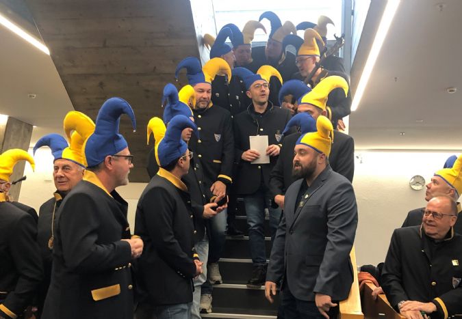 | Vorstellung des neuen Obernaaren 2026 Am Ende der 59. DV der FUKO präsentierte die Tannzapfe Zunft ihren neuen Obernaar... Andrea Della Chiesa, ist der neue Obernaar der Oltner Fasnacht 2026. Wie seine Tannzapfe Zunft mitteilt, wird er als «Andrea Primo Secondo» unterwegs sein. Mit dem Motto «Habemus Tannzapfia» wolle man zeigen, «dass wir da sind und dafür sorgen, dass die Fasnachtstraditionen eingehalten und gefeiert werden». Das Motto verkörpere die Verbindung zwischen der Schweiz und Italien und zeige mit dem blau-gelben Logo auch die Zunftfarben. ![]() |